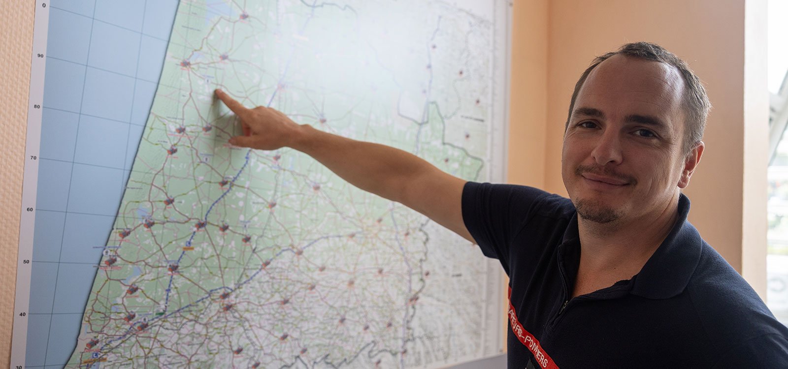 Cette nuit-là de fin juillet, à 4h42, ce n'est pas un incendie qui réveille l'équipe de Mimizan mais une intervention pour un déclenchement de téléalarme chez un papi. Alertés comme toujours par le CTA Codis basé à Mont-de-Marsan qui reçoit tous les appels et dispatche les interventions, une minute plus tard, les pompiers sont prêts à y aller. Sur les ordinateurs, tous les personnels et matériels disponibles sont recensés en permanence, et géolocalisés, avec toujours une version papier en cas de panne, et des atlas urbains et forestiers avec l'intégralité des routes, chemins, points d'eau, et les coordonnées DFCI (Défense des forêts contre les incendies), acteur majeur de la prévention contre les incendies de forêts qui fait aussi des patrouilles au milieu des pins.